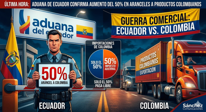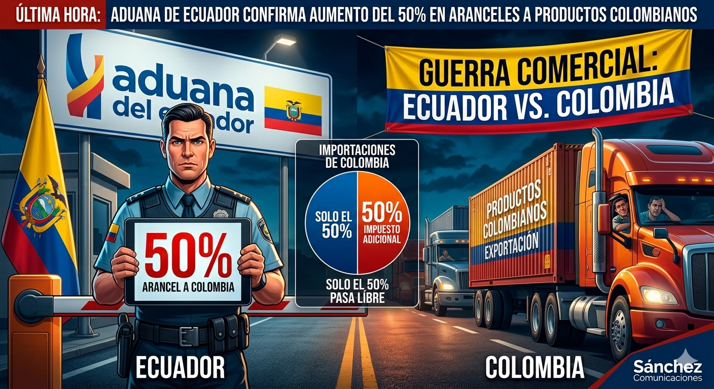 El Gobierno de Daniel Noboa anunció que, desde el 1 de marzo, Ecuador elevará al 50% el arancel a los productos colombianos, argumentando criterios de seguridad nacional y la falta de medidas efectivas por parte de Colombia para fortalecer el control fronterizo y enfrentar el narcotráfico. El Ministerio de Producción comunicó la decisión en la red social X y señaló que el país adopta acciones soberanas para exigir corresponsabilidad en una problemática que consideran conjunta.