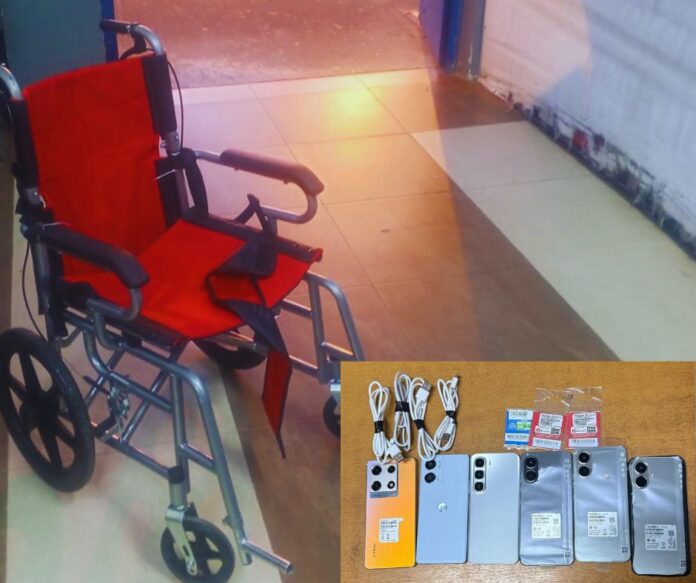 En su interior se hallaron seis teléfonos celulares, tres chips de diferentes operadoras y varios cables USB, todos ocultos cuidadosamente.
