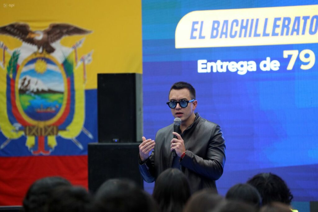 En medio del paro convocado por la Conaie, que cumple su día 16, el presidente Daniel Noboa visitó la ciudad de Cuenca para entregar laboratorios educativos en varias instituciones, entre ellas la Unidad Educativa Manuel J. Calle.