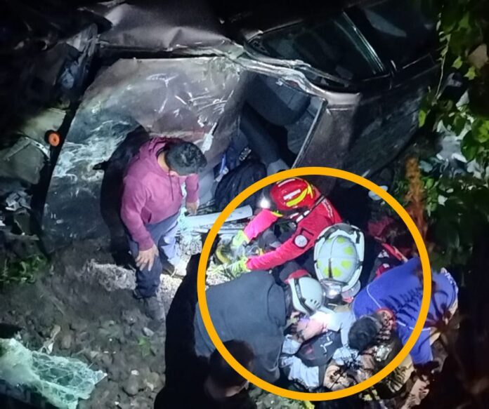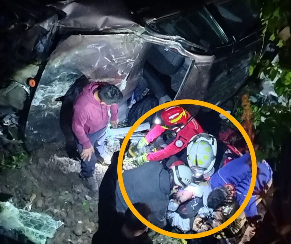 El siniestro dejó cinco heridos, todos miembros de la misma familia, quienes fueron rescatados en una dramática operación por el Cuerpo de Bomberos de Baños, la Policía Nacional y ambulancias del Ministerio de Salud Pública.