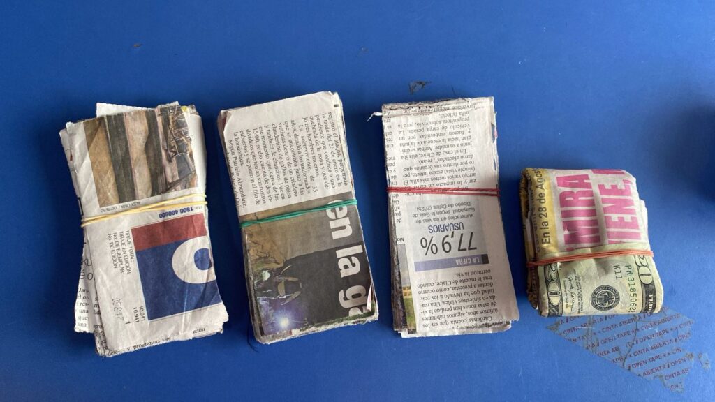El método de estas personas era: hacer caer un paquete, posterior a su víctima le decían que van a compartir el contenido del paquete que sería dinero. En ese momento (ya perfilada la víctima que tiene dinero) le cambian el efectivo por papel periódico recortado al tamaño de papel. Esto está envuelto en fundas para que cuando la víctima lo descubra, ellos ya se han retirado del lugar.